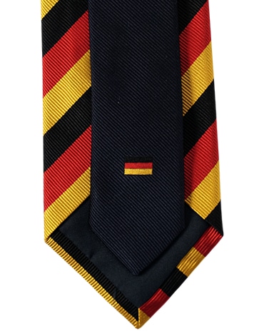 鎌倉シャツでは初となる、国旗をイメージしたネクタイが登場。大剣には国旗のカラーを用いたレジメンタル、小剣にはネイビー無地に国旗の刺繍を施しました。
