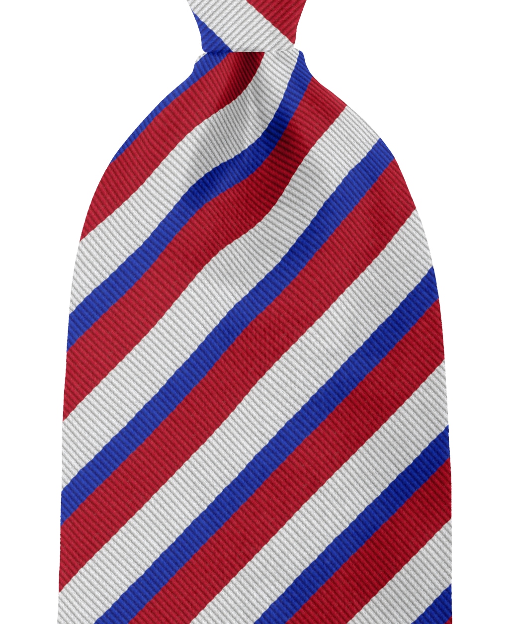 鎌倉シャツでは初となる、国旗をイメージしたネクタイが登場。大剣には国旗のカラーを用いたレジメンタル、小剣にはネイビー無地に国旗の刺繍を施しました。