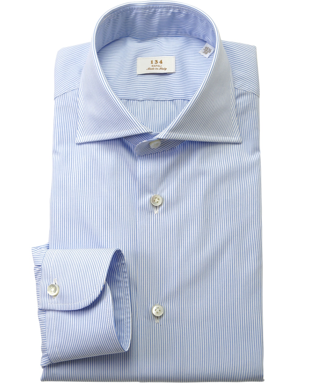 袖の後付け、袖・ボタン・ガゼットの手縫い、厚めの白蝶貝など、多くのこだわりを詰め込んだイタリア製ドレスシャツ。 ナポリらしさにこだわった自信を持ってオススメする一着です。