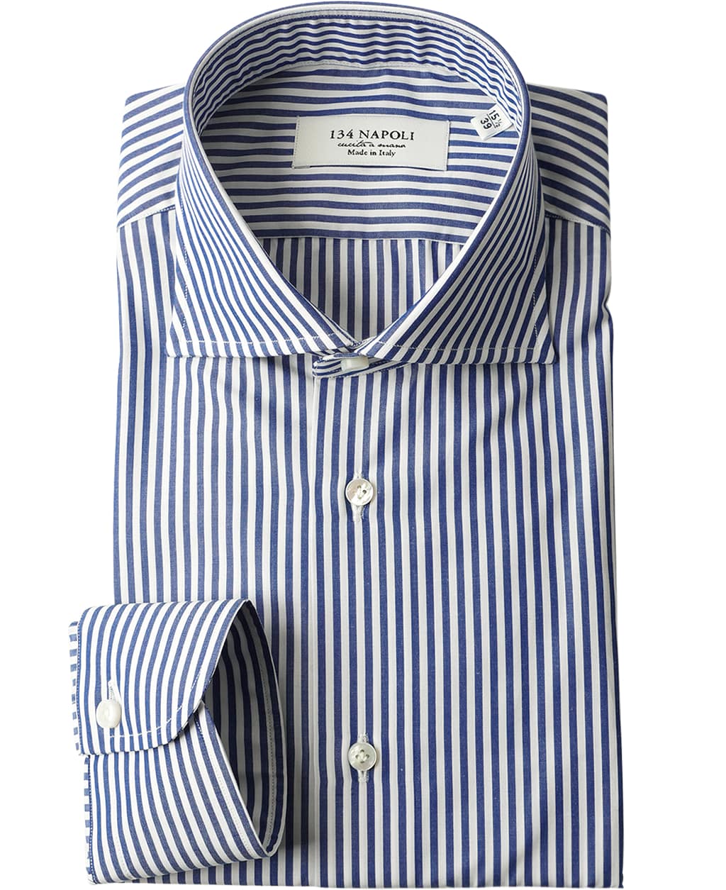 袖の後付け、袖・ボタン・ガゼットの手縫い、厚めの白蝶貝など、多くのこだわりを詰め込んだイタリア製ドレスシャツ。 ナポリらしさにこだわった自信を持ってオススメする一着です。