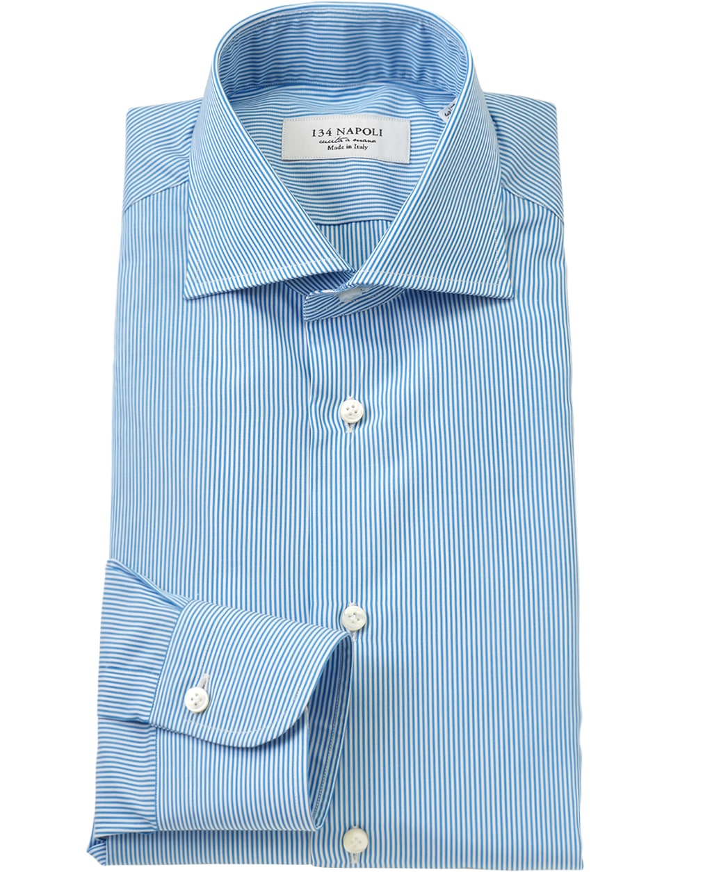 袖の後付け、袖・ボタン・ガゼットの手縫い、厚めの白蝶貝など、多くのこだわりを詰め込んだイタリア製ドレスシャツ。 ナポリらしさにこだわった自信を持ってオススメする一着です。