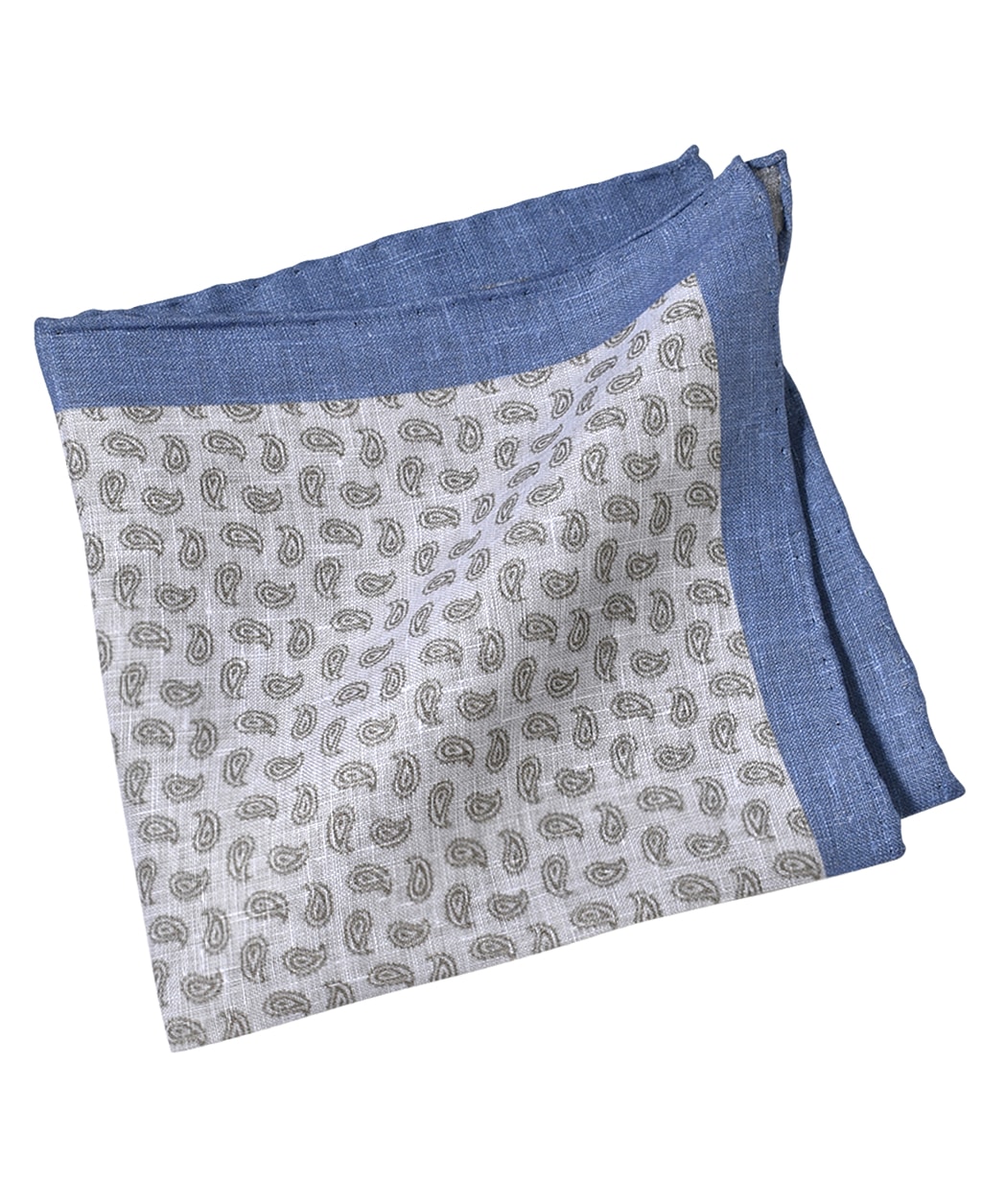 ドライタッチで軽やかな、リネン100%のポケットチーフ。 淡めのブルーと素材特有の不規則に入るネップは ポケットに挿すだけで全体の雰囲気が爽やぎます。