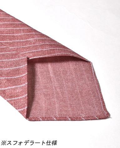 今回注目の「スフォデラート」という仕様のネクタイ。 イタリア語で「裏地無し」を意味し、ネクタイの起源である“スカーフ”の様な軽快 さを表現。 柔らかな表情は、何とも言えないエレガントな艶美さを感じさせます。 通常よりも縫製に時間を要す上に技術も必要となり、コストも上昇します。 本場イタリアの縫製技術で作られた本物の「スフォデラート」を 破格のプライスにて数量限定販売を実現しました。