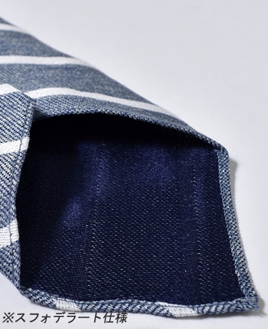 今回特に注目は「スフォデラート」という仕様のネクタイ。 イタリア語で「裏地無し」を意味し、ネクタイ本来の由来である“スカーフ”の様な軽快さを表現。 通常では出せない柔らかな表情は、何とも言えないエレガントな艶美さを感じさせます。 通常のネクタイよりも縫製に時間を要す上に技術も必要となり、コストも上昇しますが、 本場イタリアの縫製技術で作られた本物の「スフォデラート」を ¥5,900という破格での数量限定販売を実現しました。