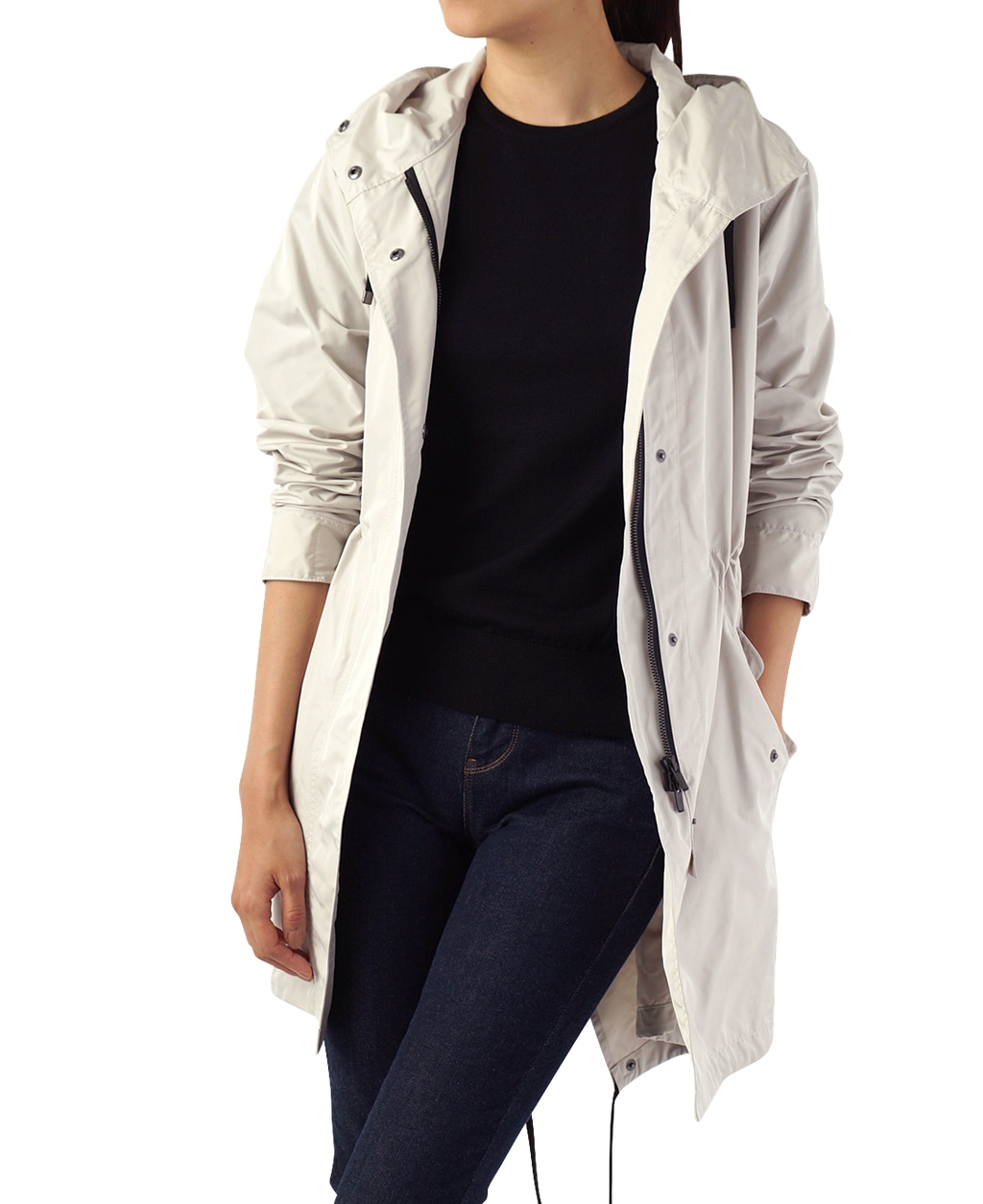 ウエストの絞り、調整できる袖口・後ろ身頃の裾…多機能ながら、さらっと羽織れる万能なコートです。
