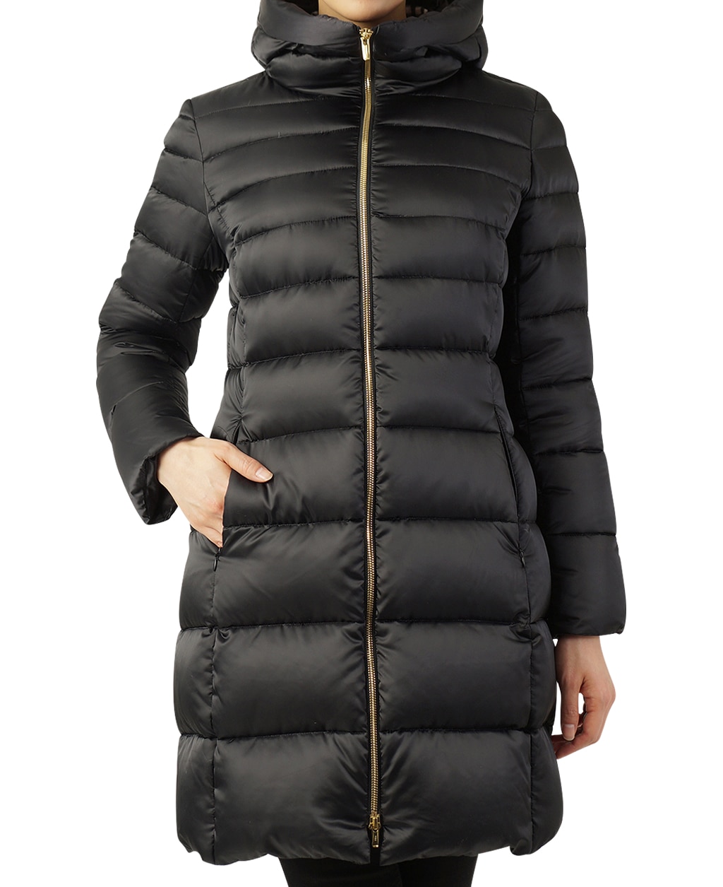 上から下にかけてだんだんと厚みを増すグラデーションステッチと、通常よりも高い位置に設定されたウエスト位置、立体的な縫製で、女性の体をスタイルよく魅せる、プレミアム感あふれるダウンコートです。
