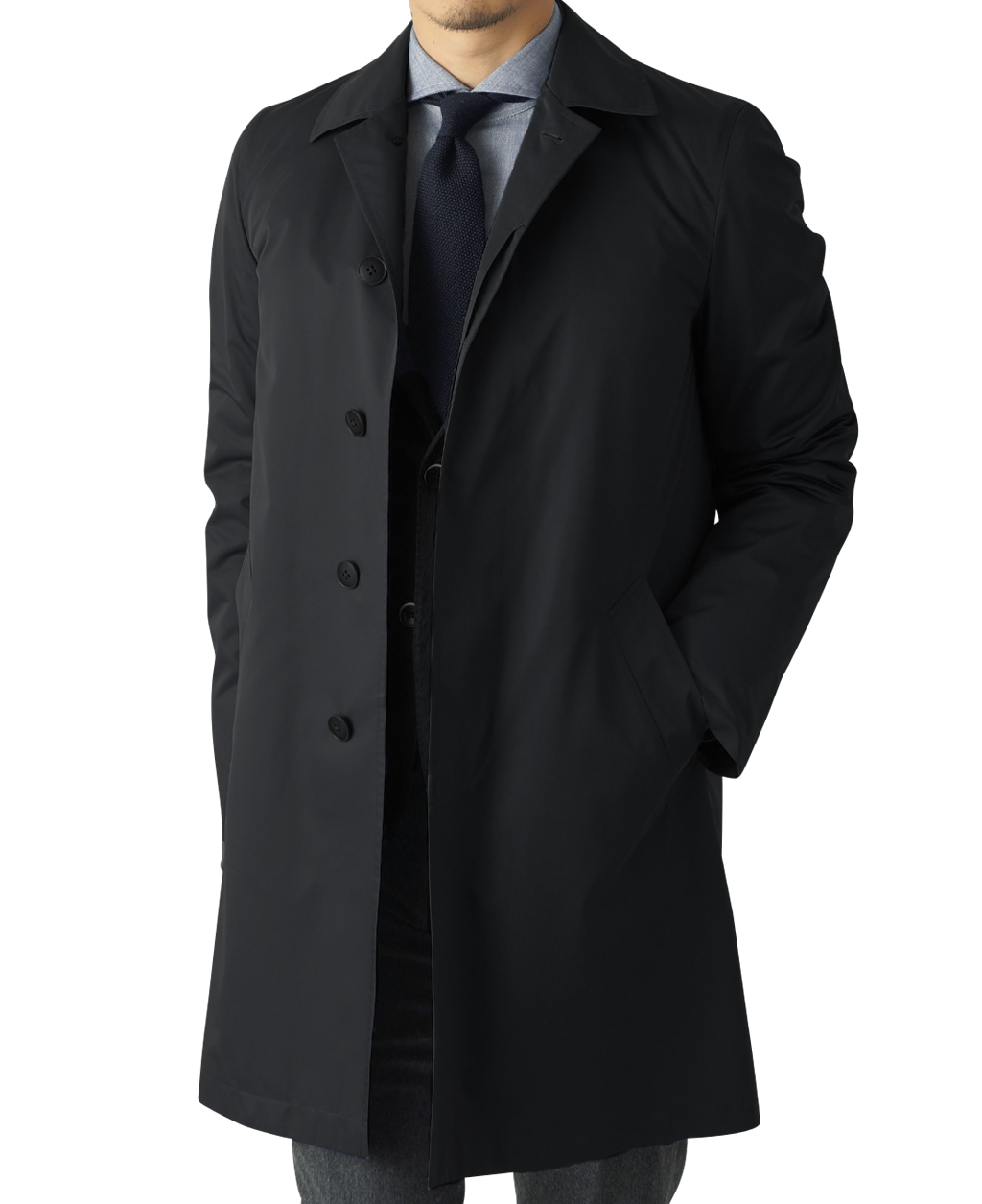 取り外し可能なインナーダウンを採用したコート。見た目からはダウンが入っているように見えないスマートなシルエット。