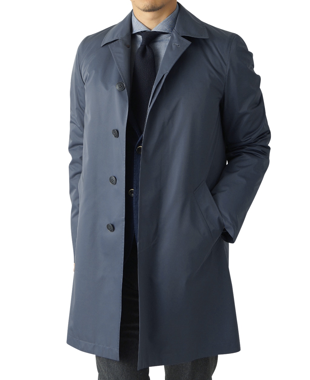 取り外し可能なインナーダウンを採用したコート。見た目からはダウンが入っているように見えないスマートなシルエット。