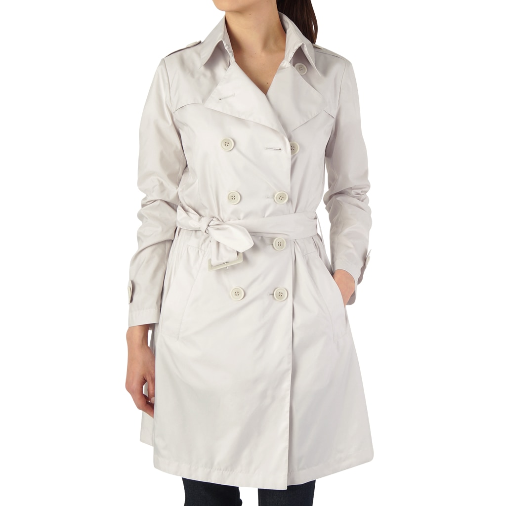 かっちりとした定番のトレンチコートのシルエットも、合繊の魔法でソフトな印象に。着映えするシルエットと絶妙な着丈がポイント。