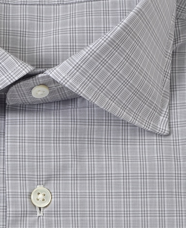 ■襟の表裏のパターンに差をつけ、コンパクトかつ構築的な襟を実現。品の良いドレスシャツの証である、首に巻きつくような内巻きフォルムは、匠によるいせ込み技術の成果です。