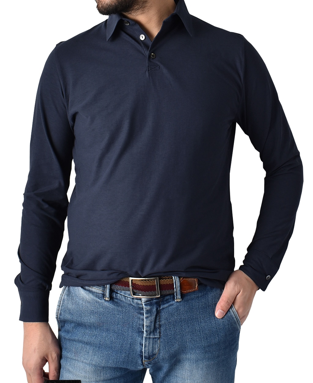 強撚素材を使用した爽やかな着心地の長袖ポロシャツ。一枚でももちろんですが、ジャケットのインナーとしても活躍する134定番アイテムです。