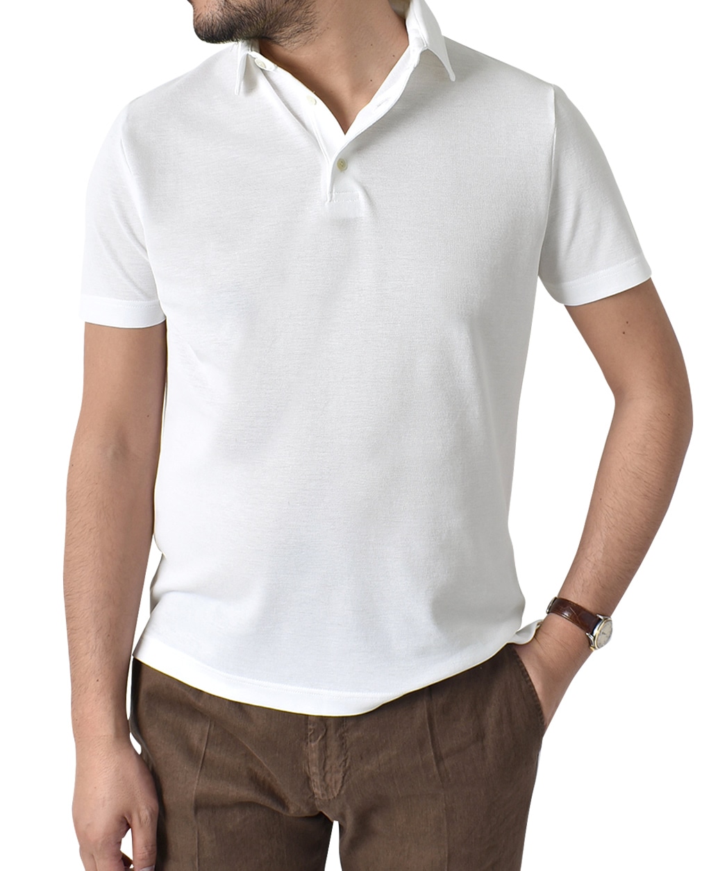 糸を通常より強く撚ることでシャリ感を持たせたポロシャツ。