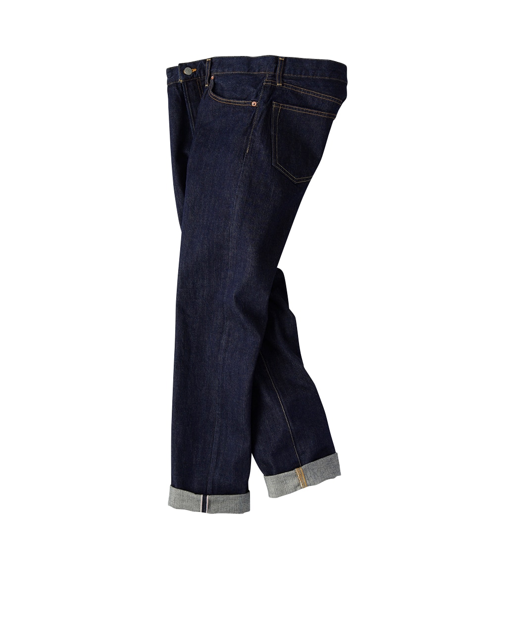 - 昔ながらのジーンズ製法にこだわり、脇の割り縫い部分が生地端(セルヴィッチ)になるように設計された、ヴィンテージ仕様の直線的なカッティング。