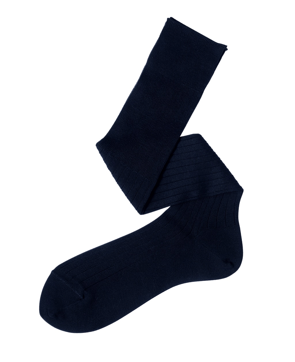 ・綿100%の正統派リブ編みロングホーズ。綿100%のためわずかに透け感がありますが、ハイゲージで編目が細かく引き締まっているため、ドレッシーな仕上りです。