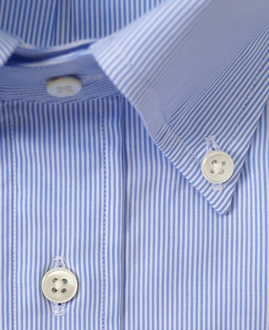 通常針目は3cmに18針以上で高級とされていますが、私たちのシャツは21針で縫い上げられています。また、耐久性に優れた「巻き伏せ本縫い」でシャツを仕立てています。