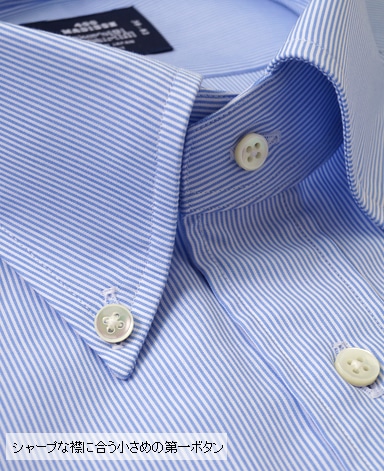 ■第一ボタンには、シャープな襟に合う小さめの9mmボタンを使用。