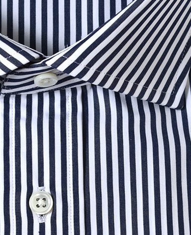 通常針目は3cmに18針以上で高級とされていますが、私たちのシャツは21針で縫い上げられています。また、耐久性に優れた「巻き伏せ本縫い」でシャツを仕立てています。