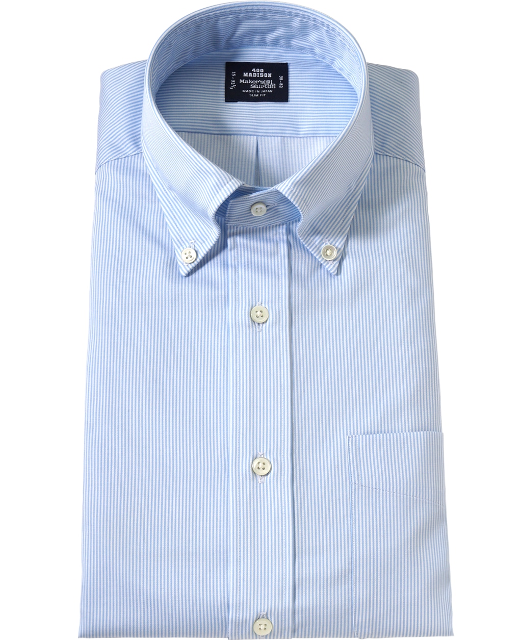 通常針目は3cmに18針以上で高級とされていますが、私たちのシャツは21針で縫い上げられています。また、耐久性に優れた「巻き伏せ本縫い」でシャツを仕立てています。