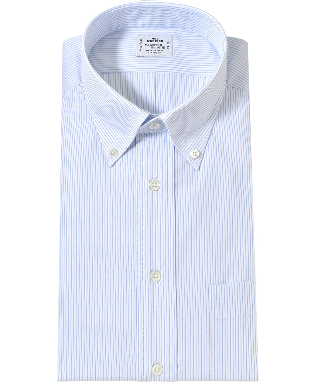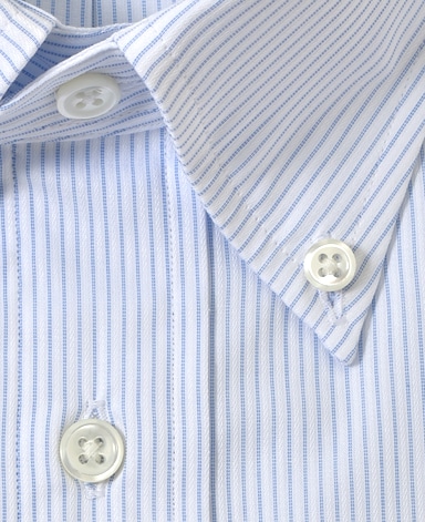 通常針目は3cmに18針以上で高級とされていますが、私たちのシャツは21針で縫い上げられています。また、耐久性に優れた「巻き伏せ本縫い」でシャツを仕立てています。