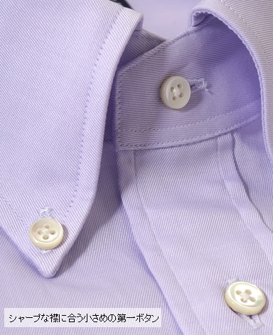■第一ボタンには、シャープな襟に合う小さめの9mmボタンを使用。