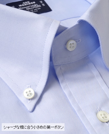 ■第一ボタンには、シャープな襟に合う小さめの9mmボタンを使用。