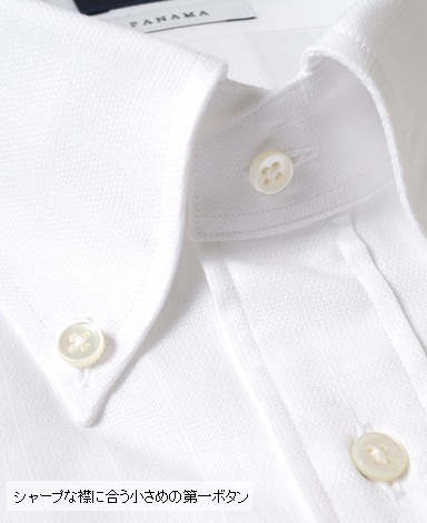 ■第一ボタンには、シャープな襟に合う小さめの9mmボタンを使用。