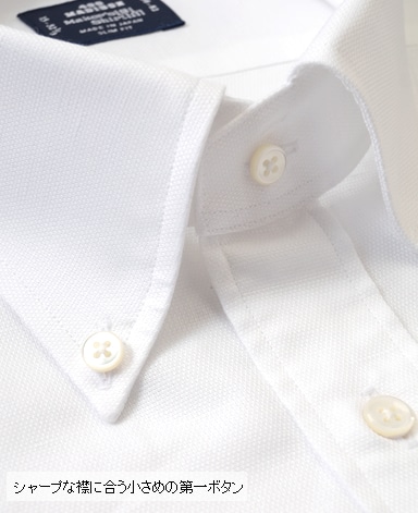 ■第一ボタンには、シャープな襟に合う小さめの9mmボタンを使用。