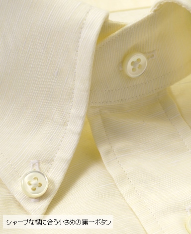■第一ボタンには、シャープな襟に合う小さめの9mmボタンを使用。