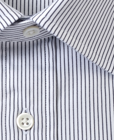 通常針目は3cmに18針以上で高級とされていますが、私たちのシャツは21針で縫い上げられています。また、耐久性に優れた「巻き伏せ本縫い」でシャツを仕立てています。