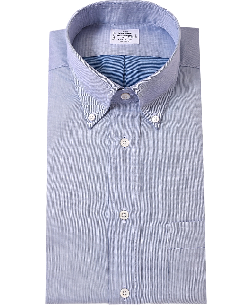 通常針目は3cmに18針以上で高級とされていますが、私たちのシャツは21針で縫い上げられています。また、耐久性に優れた「巻き伏せ本縫い」でシャツを仕立てています。