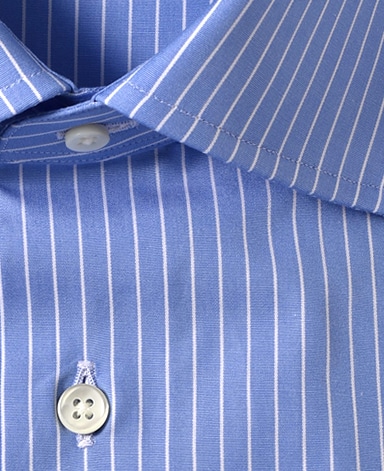 通常針目は3cmに18針以上で高級とされていますが、私たちのシャツは21針で縫い上げられています。また、耐久性に優れた「巻き伏せ本縫い」でシャツを仕立てています。