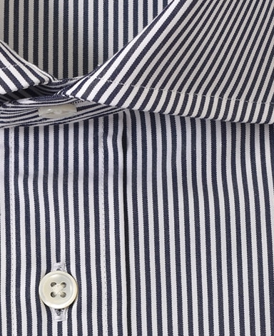 通常針目は3cmに18針以上で高級とされていますが、私たちのシャツは21針で縫い上げられています。また、耐久性に優れた「巻き伏せ本縫い」でシャツを仕立てています。