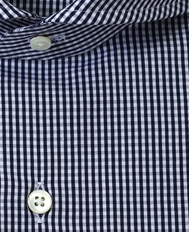 通常針目は3cmに18針以上で高級とされていますが、私たちのシャツは21針で縫い上げられています。また、耐久性に優れた「巻き伏せ本縫い」でシャツを仕立てています。