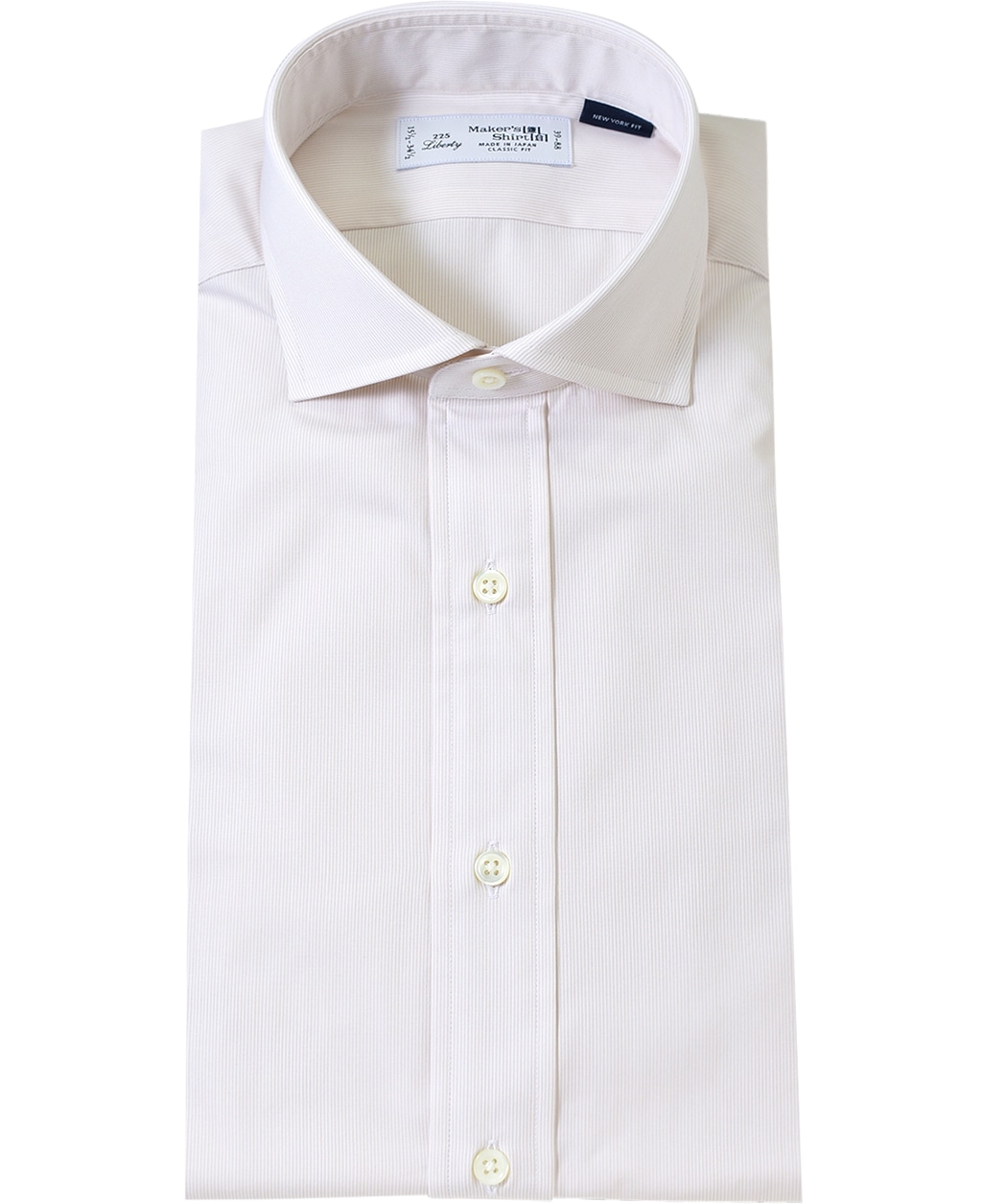 通常針目は3cmに18針以上で高級とされていますが、私たちのシャツは21針で縫い上げられています。また、耐久性に優れた「巻き伏せ本縫い」でシャツを仕立てています。