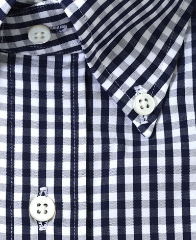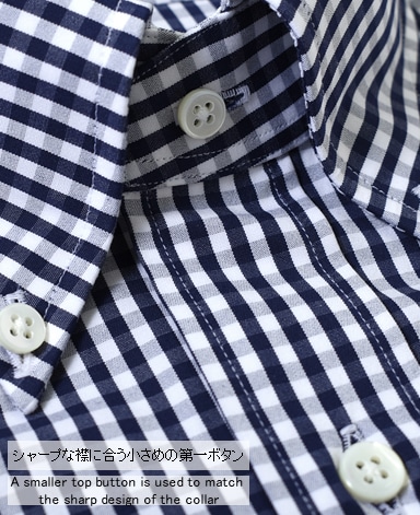 通常針目は3cmに18針以上で高級とされていますが、私たちのシャツは21針で縫い上げられています。また、耐久性に優れた「巻き伏せ本縫い」でシャツを仕立てています。