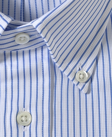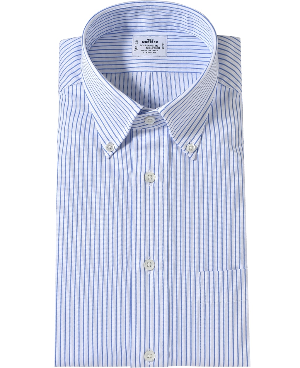通常針目は3cmに18針以上で高級とされていますが、私たちのシャツは21針で縫い上げられています。また、耐久性に優れた「巻き伏せ本縫い」でシャツを仕立てています。