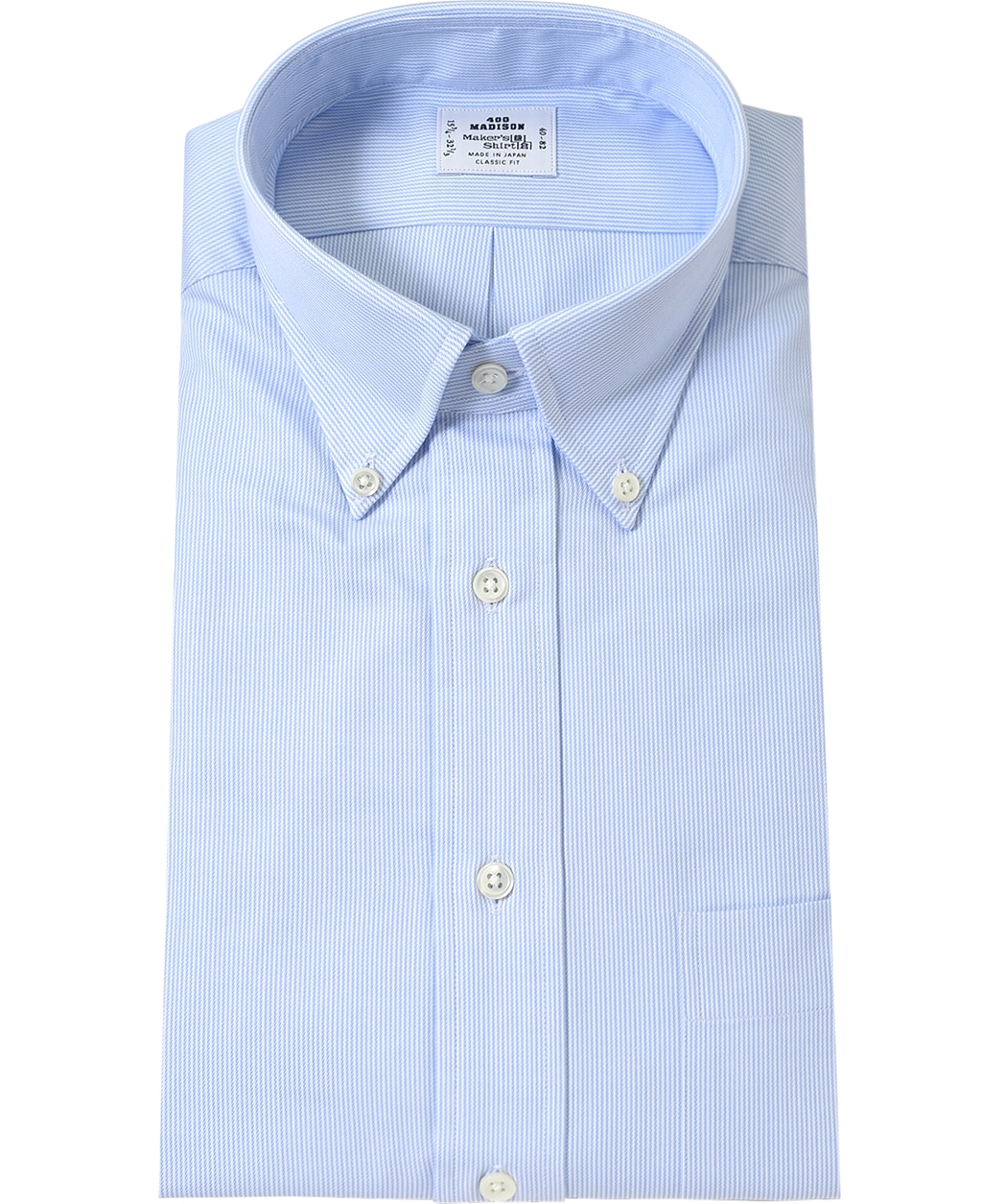 通常針目は3cmに18針以上で高級とされていますが、私たちのシャツは21針で縫い上げられています。また、耐久性に優れた「巻き伏せ本縫い」でシャツを仕立てています。