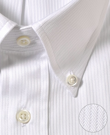 通常針目は3cmに18針以上で高級とされていますが、私たちのシャツは21針で縫い上げられています。また、耐久性に優れた「巻き伏せ本縫い」でシャツを仕立てています。