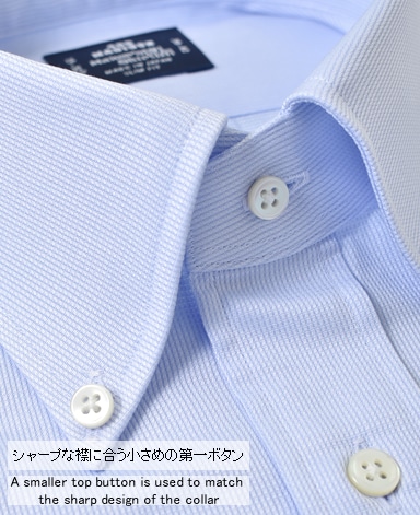 ■第一ボタンには、シャープな襟に合う小さめの9mmボタンを使用。