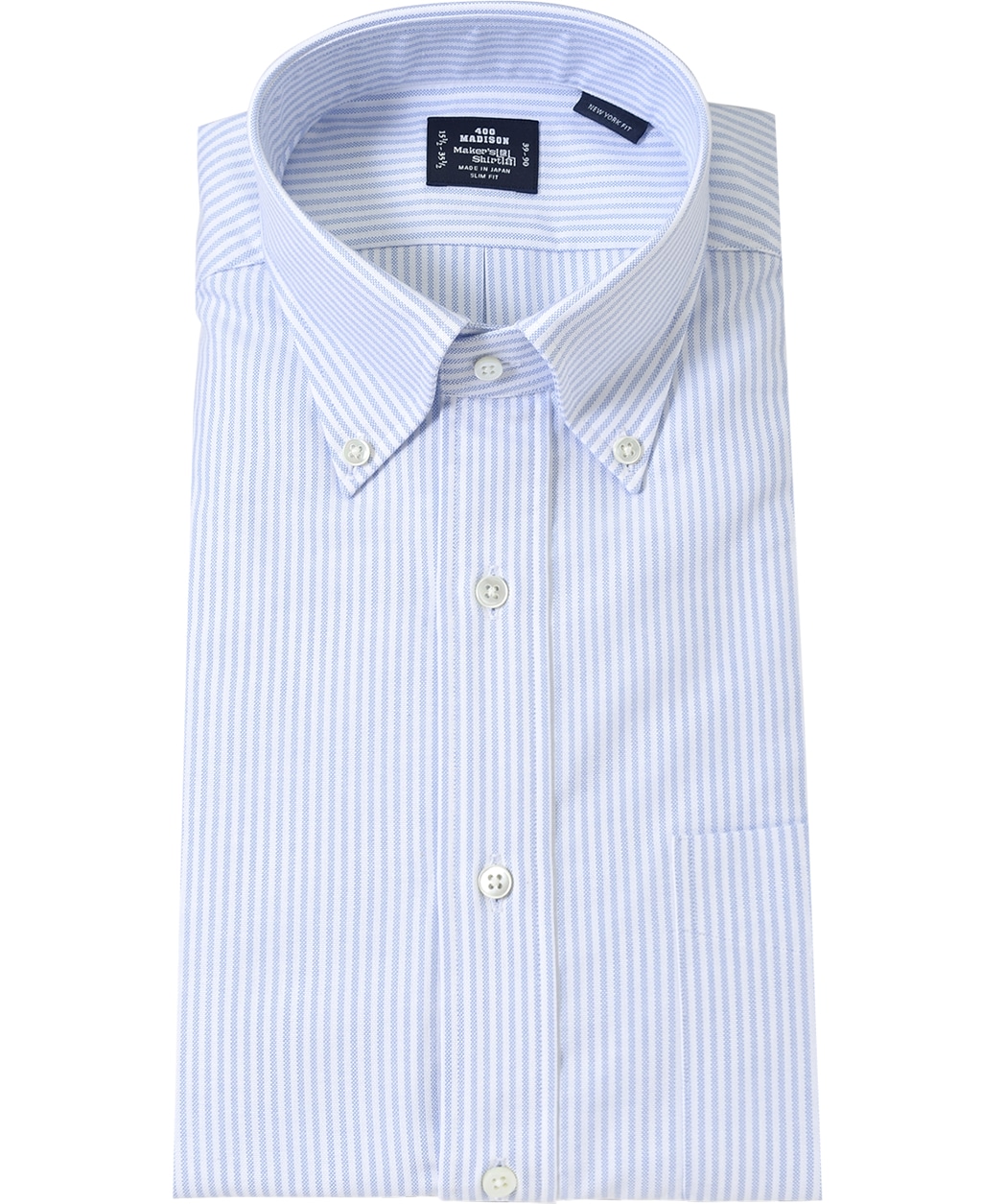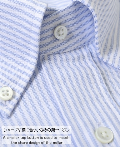 通常針目は3cmに18針以上で高級とされていますが、私たちのシャツは21針で縫い上げられています。また、耐久性に優れた「巻き伏せ本縫い」でシャツを仕立てています。
