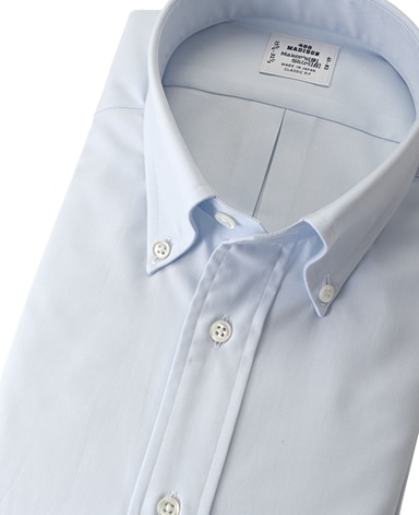 通常針目は3cmに18針以上で高級とされていますが、私たちのシャツは21針で縫い上げられています。また、耐久性に優れた「巻き伏せ本縫い」でシャツを仕立てています。