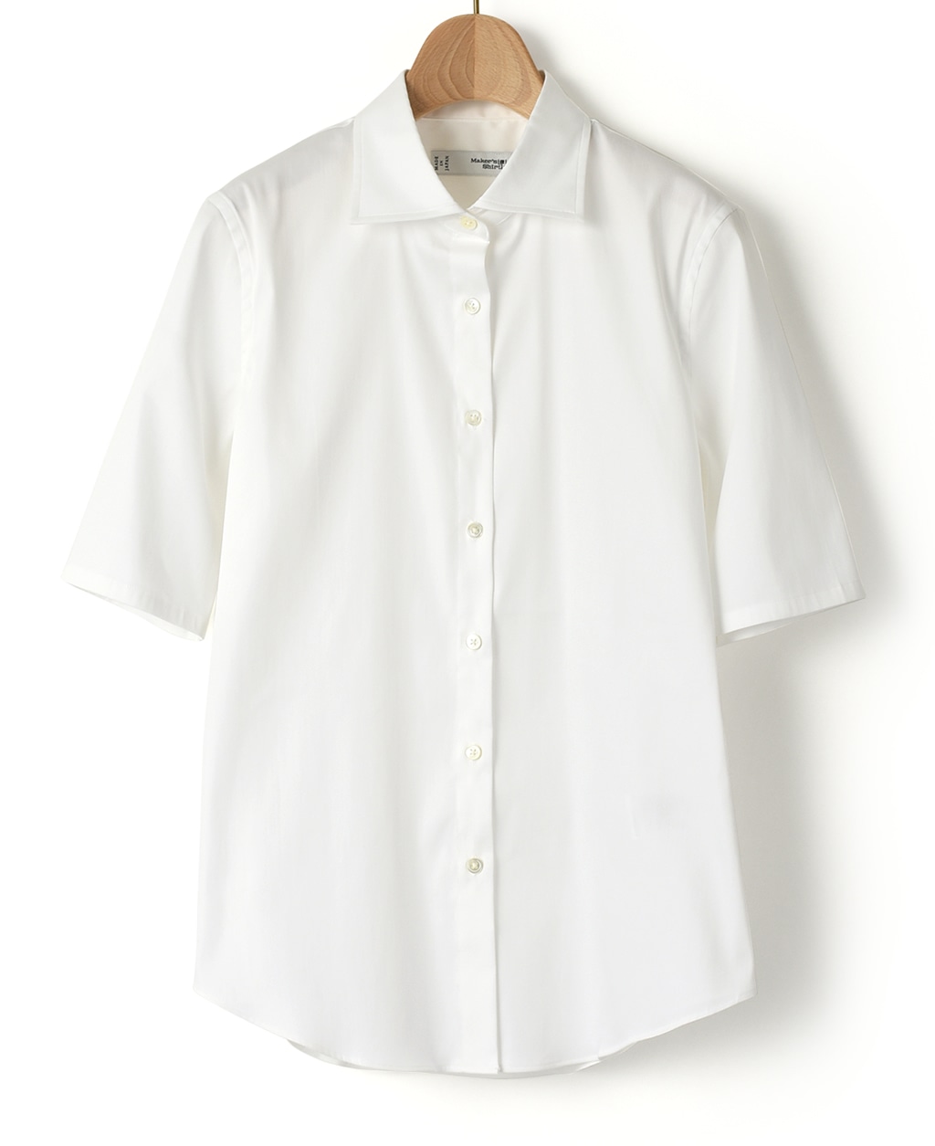 後ろ身頃に施したダーツが、シェイプされたシルエットを生み出す「スリムベーシックシャツ」。