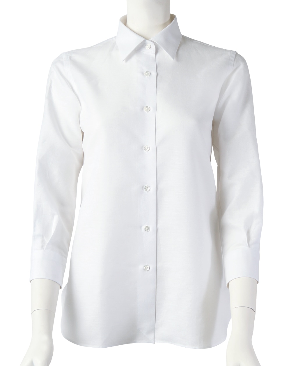 手首がスッキリ見える七分袖のベーシックシャツは、ワードローブに加えたいマストアイテムです。