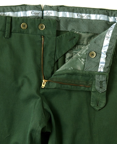南イタリアの一流ファクトリーに別注したcasual134オリジナルパンツです。ストレッチ性のあるコットン素材。テーパードしたシルエットのためシルエットも美しく、まさに大人のカジュアルにふさわしい至極の1本に仕上がりました。地色:カーキ