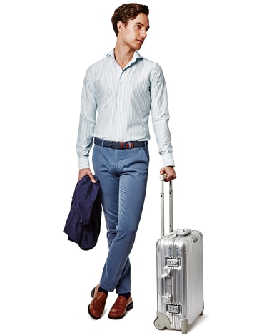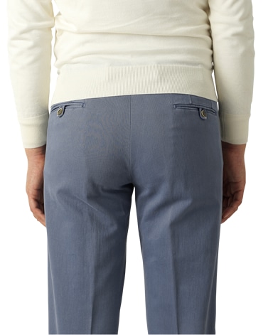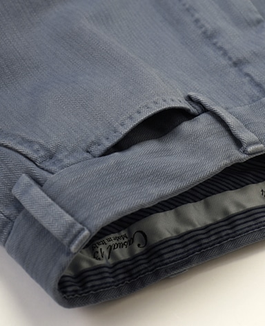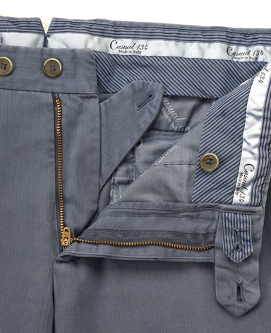 南イタリアの一流ファクトリーに別注したcasual134オリジナルパンツです。ストレッチ性のあるコットン素材。テーパードしたシルエットのためシルエットも美しく、まさに大人のカジュアルにふさわしい至極の1本に仕上がりました。地色:ブルー