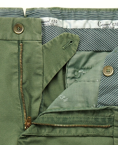 南イタリアの一流ファクトリーに別注したcasual134オリジナルパンツです。ストレッチ性のあるコットン素材。テーパードしたシルエットのためシルエットも美しく、まさに大人のカジュアルにふさわしい至極の1本に仕上がりました。※色落ちの可能性がございますので、他のものと一緒に洗濯しないでください。