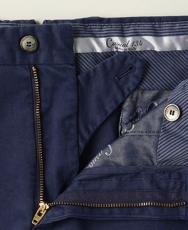 カシミヤのように柔らかな雰囲気の生地感は、秋冬ジャケットとのコーディネートに最適。ストレッチ性も確保しているので、履き心地も抜群です。ネイビー・ベージュ・グレーの定番色の他に今期注目のワインを加えたラインナップで登場。お取扱い上のご注意