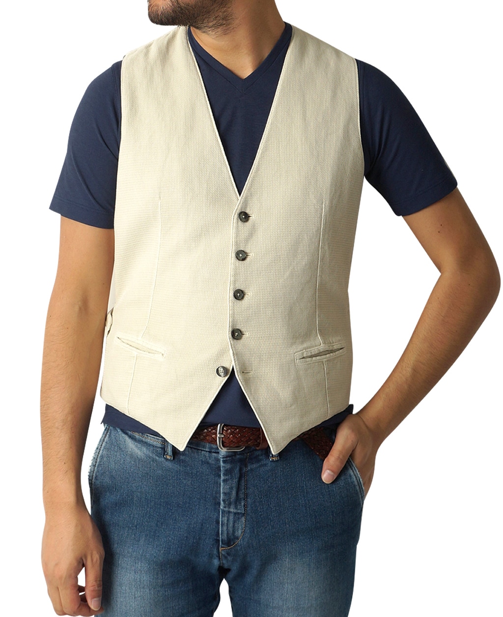 昨年好評だったジレが新色を追加して登場しました。 コットン&リネンの夏向き素材を採用。 シャツをはじめTシャツで合わせるなど様々なコーディネートを楽しめます。■左右のベルトでサイズ調整が可能