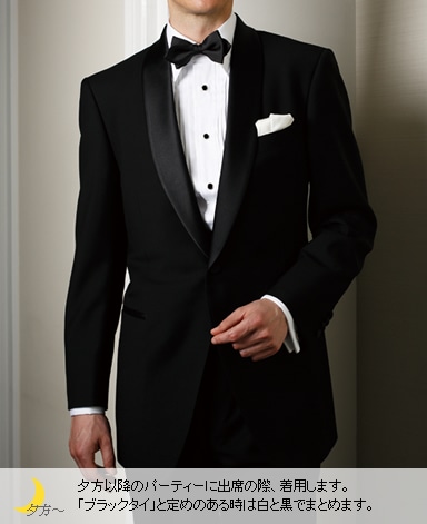 >> フォーマルアイテムはこちら夕方以降のパーティーに出席の際、着用します。「ブラックタイ」と定めのある時は白と黒でまとめます