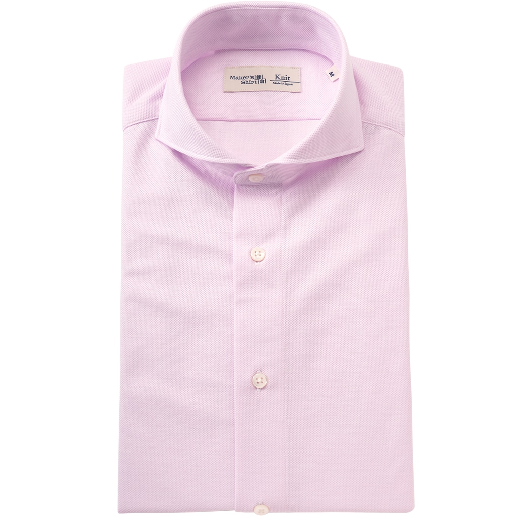 高密度ニット生地はドレスシャツと見間違うほどの美しさ。